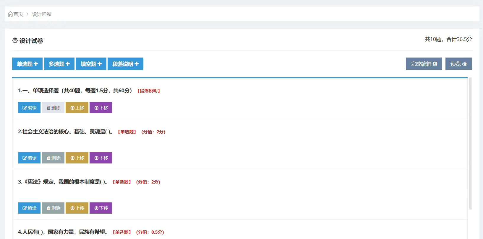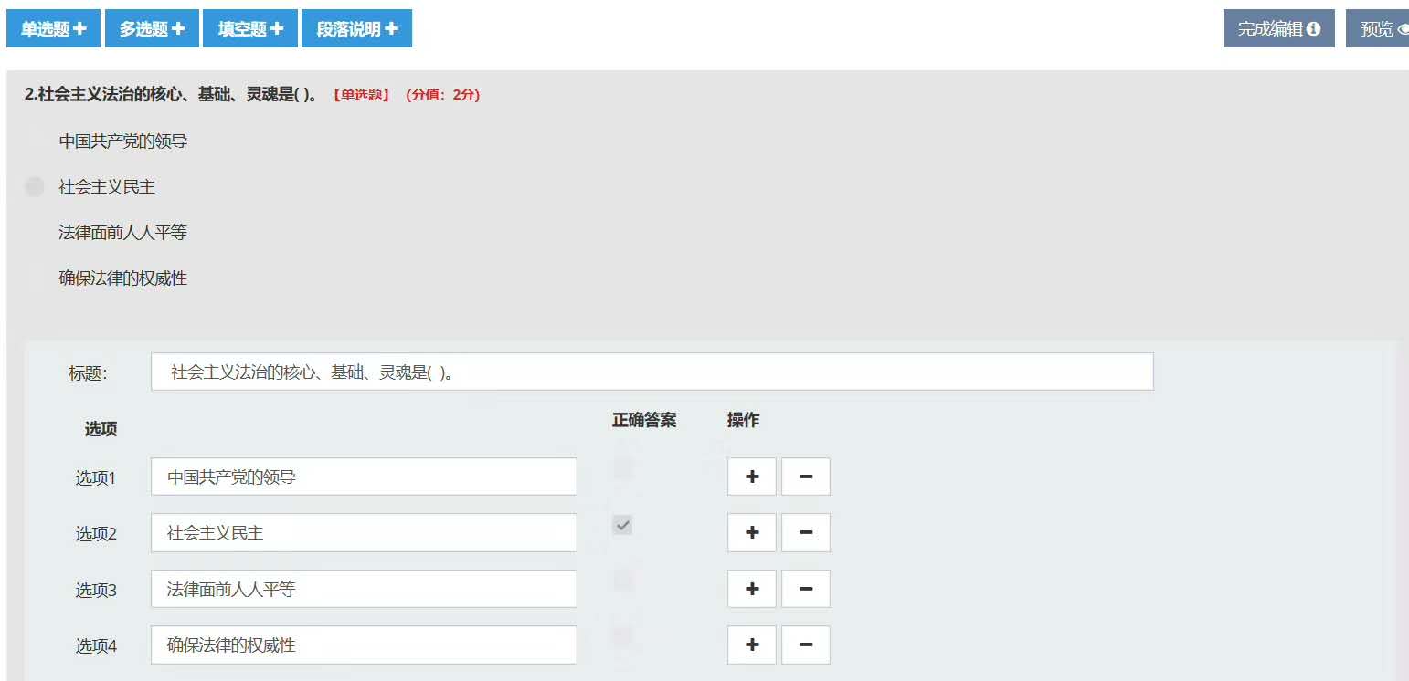 簡易性:支持批量導(dǎo)入各種類型文件題庫,支持固定試卷、抽題試卷和隨機(jī)試卷,自動(dòng)生成統(tǒng)計(jì)報(bào)表。